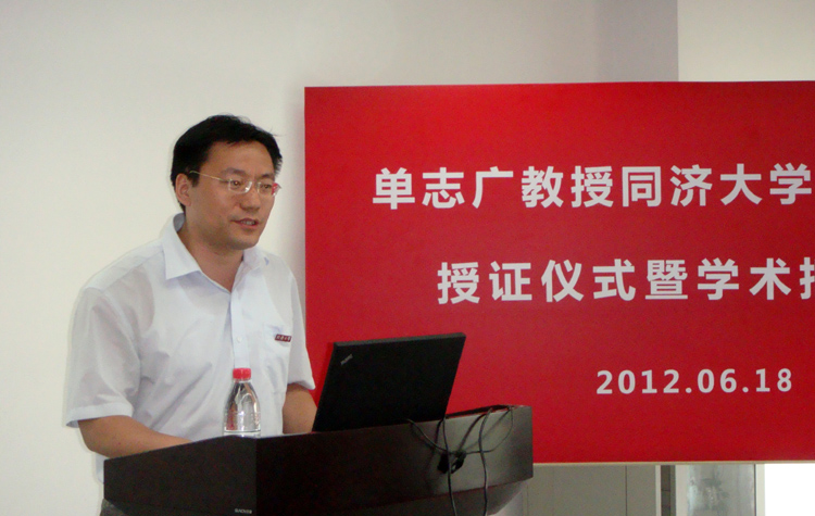 授聘仪式上,丁志军副主任介绍了单志广教授的个人简历以及学术成就,苗夺谦副院长为单志广教授佩戴了必赢线路检测中心校徽,颁发了兼职教授证书。