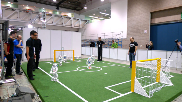 机器人足球赛涉及人工智能、机器人学、通讯、传感、精密机械和仿生材料等诸多领域的前沿研究和技术集成,实际上是高技术的对抗赛。RoboCup作为国际上最具影响的两大世界杯机器人足球赛之一(另一赛事为FIRA),有严格的比赛规则,融趣味性、观赏性、科普性为一体。(程 莉)