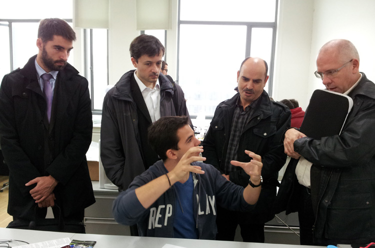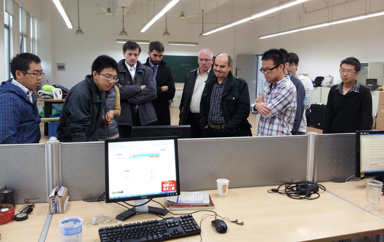 代表团一行首先参观了H楼电信学院的机器人和智能系统的子实验室,包括机器人足球世界杯同济代表队的实践基地以及中国瑞士智能机器人联合研究和实践基地,观摩了机器人表演并观看了机器人足球队参加世界杯比赛的视频。在中国瑞士智能机器人联合研究和实践基地,实验室来自瑞士的学生为专家们介绍了飞行气球及其控制装置。专家们与学生们就中国―瑞士联合研究模式等问题进行了交流。