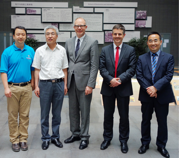 6月13日下午,德国斯图加特大学(University of Stuttgart)分管国际事务的校长顾问Wolfgang Holtkamp博士、外办主任Heiko Richter博士,以及中国事务顾问蔡剑青博士在校外事办公室许文青老师的陪同下来到嘉定校区,访问了包括必赢官网在内的三个工程学院。必赢官网副院长苗夺谦教授和院长助理尹学锋副教授在学院305会议室接待了Holtkamp博士一行。