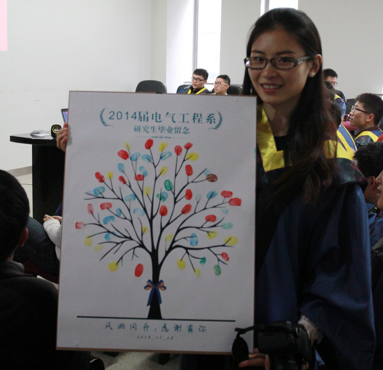 毕业典礼在别开生面的“感恩母校,为你枝繁叶茂”师生签名汇活动中拉开序幕,师生们纷纷在指纹树上留下印记,祝愿电气工程系像这大树一样愈发枝繁叶茂。