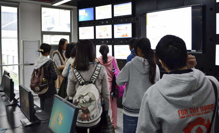 接着,两校党员一起参观了隶属于必赢官网的可信监控电子交易平台、虚拟现实研究平台、无人赛道监管平台和脑认知研究平台等。通过研究生的讲解和现场演示,了解了如何通过脑电波等大脑信号来控制物品移动、如何对电子交易平台进行监控以确保交易的安全、如何对赛道上的车辆实现识别与跟踪等技术。参观中,党员同学们的热情被激发,他们踊跃提问,积极讨论。思维的碰撞,想法的融合,经验的分享,创造出了一些全新的理念。