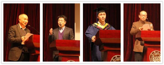 首先,陈启军院长致辞。陈院长送给同学们两句话:“生活不只有眼前的苟且,还有诗和远方”,鼓励同学们不要被眼前的困难和纠结打败,要将眼光和胸怀放大放宽,追寻自己的诗和远方;又以一句“努力不一定会成功,但努力是成功的前提”,鼓励同学们勤于奋斗,坚持不懈,在各个工作岗位上脚踏实地,努力拼搏,期待同学们做出无愧于社会、无愧于时代的贡献。