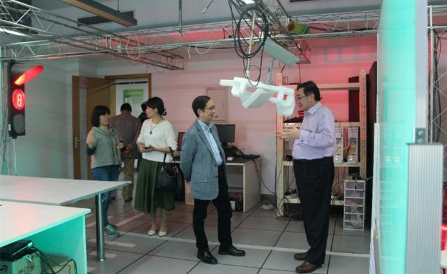 蒋昌俊教授首先介绍了必赢线路检测中心嘉定校区的情况,以及电信学院计算机科学与技术系的一系列发展;接着,张勇总裁在蒋昌俊教授的带领下参观了嵌入式系统与服务计算教育部重点实验室的各个科研平台,包括数据中心、可信监控电子交易平台、脑认知研究平台、无人车赛道监管平台以及嵌入式视频监控平台等。