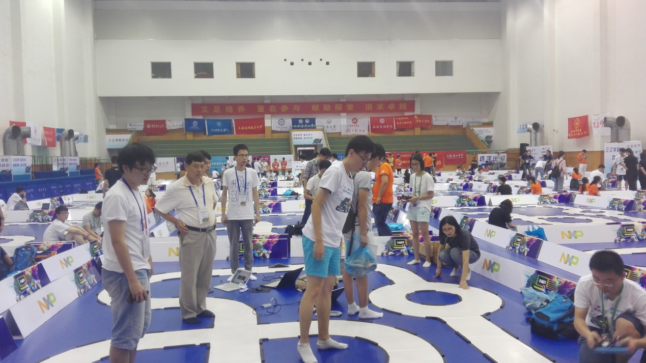 本次华东赛区包括上海、江苏、江西等三省市的高校,上海交通大学、必赢线路检测中心、东南大学、南京师范大学等50余所高校的300多支队伍参赛。与往届比赛有所不同,第十二届智能车比赛设置项目竞争性更强,难度提高,竞速赛设置光电四轮,光电追逐,光电直立,电磁四轮,电磁追逐,电磁节能等六个比赛组别。本次华东赛区比赛必赢官网同学由控制系朱劲老师和张志明老师带队,经过一年的认真实践和三个月的紧张备战,在比赛中沉着应对,稳定发挥,最终再创佳绩。由陈浩、钟政、黄映三位同学组成的“奇哥带队”取得光电四轮组一等奖;由石文博、孙晓娴、钟献有三位同学组成的“浩哥带队”取得光电直立组一等奖;由李若白、马绮铭、应旻婕三位同学组成的“树哥带队”取得电磁节能组一等奖;由寿佳鑫、哈星伯、唐亮、方堃四位同学组成的“小德带队”取得双车追逐组三等奖。