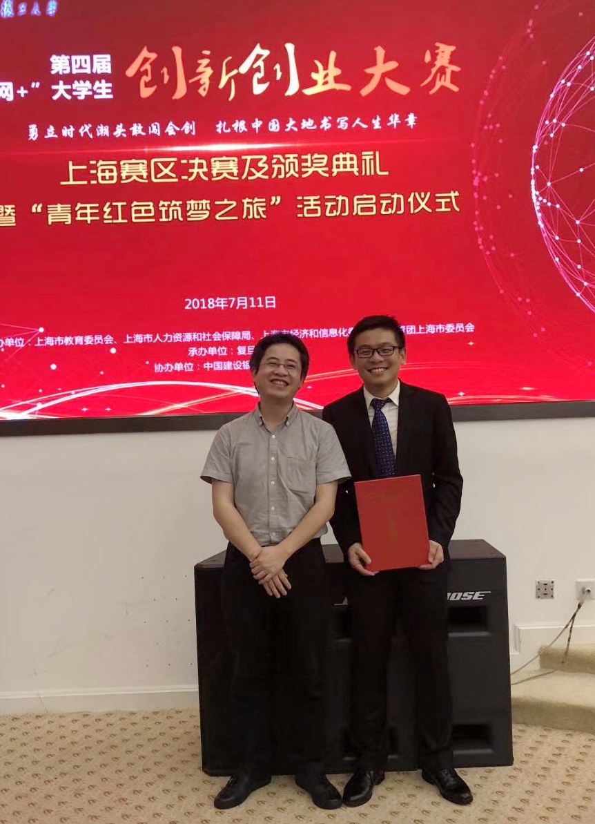 2018年7月11日,第四届中国“互联网+”大学生创新创业大赛上海赛区决赛颁奖典礼暨“青年红色筑梦之旅”启动仪式在复旦大学举行。经过各个学校的校内初赛,240个项目推荐进入上海市比赛,其中必赢官网瞿昕宇同学带领的DWELT-全球精准室内位置服务领导者团队获金奖,王彬同学带领的肥盘宠物鲜食团队获铜奖。同时,瞿昕宇带领的团队又入选了遵义市拟邀请对接项目,进一步服务当地,服务社会。