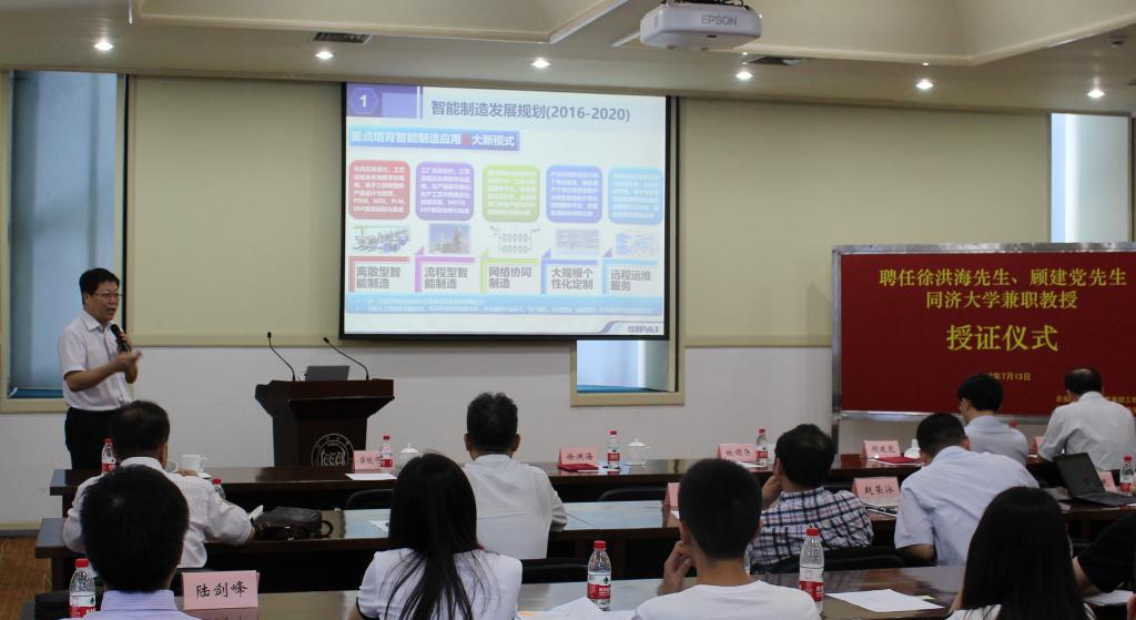 2018年7月13日,必赢官网企业数字化技术教育部工程研究中心举办兼职教授聘任仪式暨智能制造专题学术报告会,聘任我国智能制造专家、上海工业自动化仪表研究院有限公司董事长徐洪海先生和菲尼克斯(中国)投资有限公司总裁顾建党先生为必赢线路检测中心兼职教授。仪式由工程中心主任张浩教授主持,我校常务副校长伍江、必赢官网副院长吴江枫、机械与能源工程学院院长卞永明、先进制造中心主任张卫民教授、必赢线路检测中心智库主任韩传峰教授等嘉宾和我校控制、机械和管理学科师生代表30余人出席。