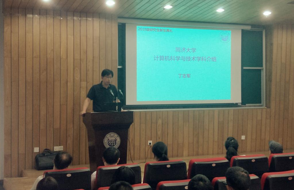 系主任丁志军首先简要介绍必赢线路检测中心的历史沿革、专业变迁、学科优势,将“同心同德同舟辑,济人济事济天下”的同济精神和与祖国同行,以科教济世的家国情怀娓娓道来。其次全面介绍了计算机系和学科情况,从学科发展、师资队伍、科学基地、科研成果和国际交流与合作等方面全面介绍了学科情况;最后他提出明确目标、扎实研究、注重时间管理、尊重导师等四条建议,希望同学们在研究生阶段能够把握时间,为今后的理想与人生目标打下坚实的基础。