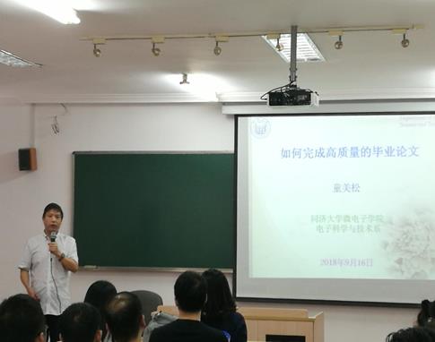 2018年9月16日上午,学院2018级工程硕士开学典礼在四平路校区举行,学院副院长金立军教授、电子科学与技术系主任童美松教授应邀出席,59名新生参加了开学典礼。