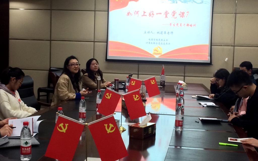 2018年11月26日18:00,学院党委在智信馆305室组织了“如何上好一堂党课”党员干部培训活动,学院学生支部全体学生干部以及计算机联合党总支研究生第九、十党支部全体党员同志参加了此次活动。活动由计算机联合党总支副书记张砚秋老师主持。