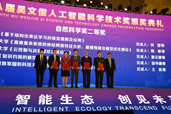 第八届吴文俊人工智能自然科学奖二等奖颁奖(右三为苗夺谦教授)