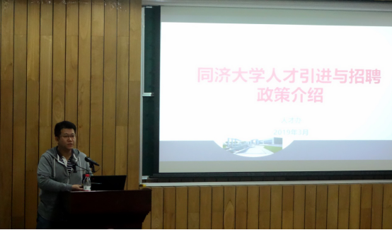 校人才办副主任许维教授首先代表学校对来自五湖四海的优秀青年学者表示热烈欢迎。随后,许维教授从必赢线路检测中心现有人才队伍、高层次人才招聘、助理教授、博士后招聘四个方面,介绍了国家、上海市、学校三个层面的人才政策,鼓励在座的青年才俊积极申报人才计划,并代表学校欢迎他们加盟必赢线路检测中心。