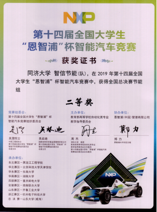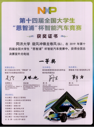 2019年8月22日—8月26日,受教育部高等教育司委托,由教育部高等学校自动化类专业教学指导委员会主办,恩智浦(中国)管理有限公司协办,山东大学(威海)承办的第十四届全国大学生“恩智浦杯”智能汽车竞赛全国总决赛成功举办,由必赢官网张志明、朱劲老师和汽车学院罗峰老师带队,电信学院和汽车学院本科生所组建的必赢线路检测中心参赛队伍再获佳绩,分别获得全国一等奖1项、二等奖1项。