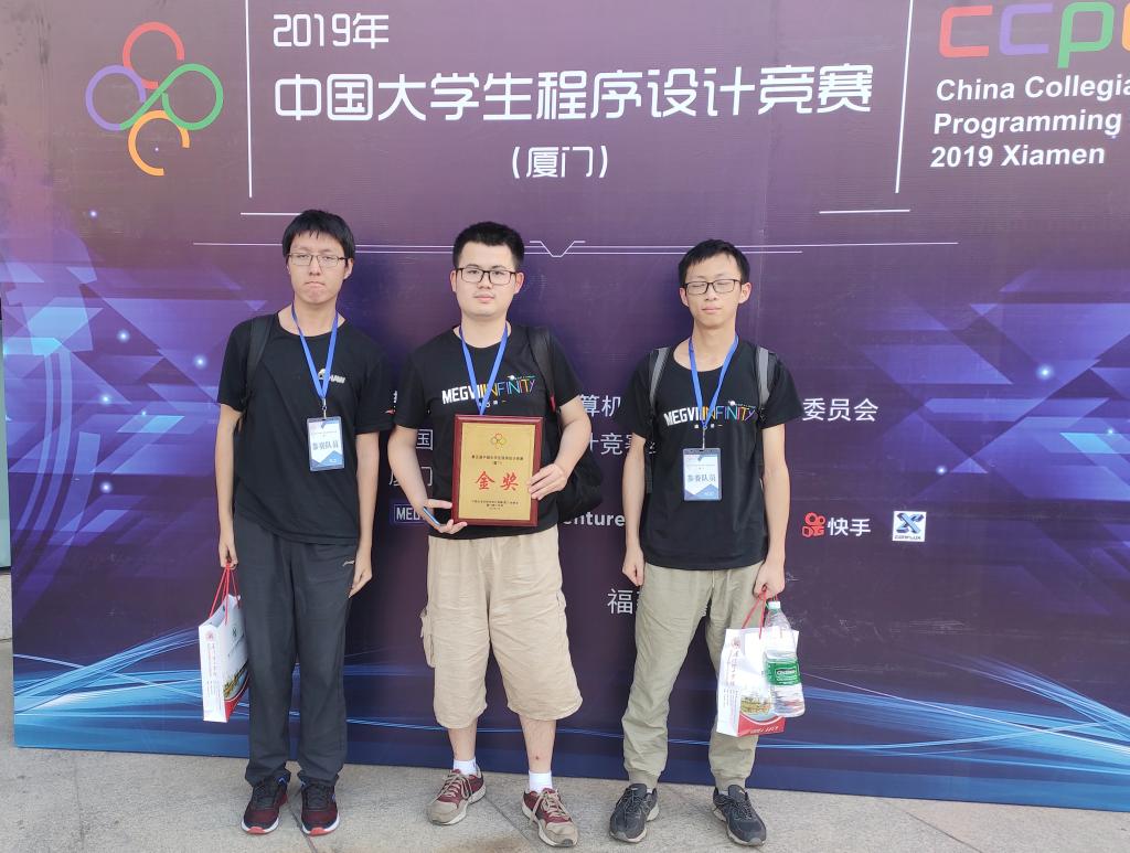 2019年10月20日,2019年中国大学生程序设计竞赛的分站赛在厦门理工大学落下帷幕。在今年三场的分站赛中,我校共取得了2金1银1铜的好成绩。其中,欧阳小伟、刘毅韬、赵屹雄组队获得了哈尔滨站和厦门站的金牌,黄颖、叶茂尧、李昊龙组队获得了秦皇岛站的银牌,王佳雯、王宇其、迟承道组队获得铜牌。