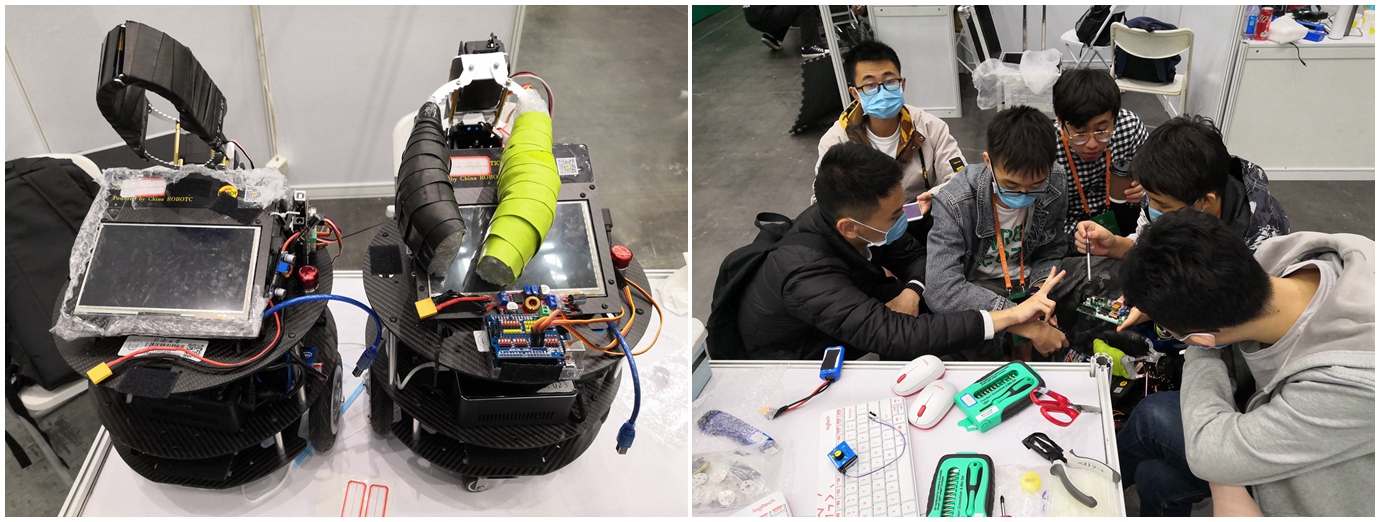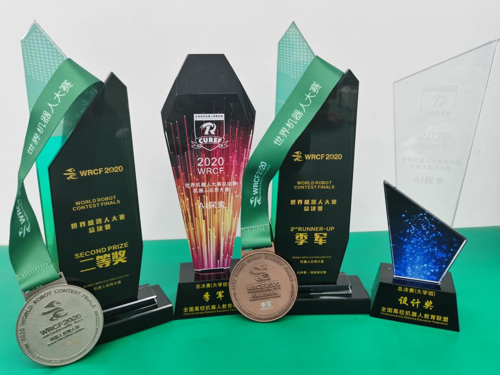 2020年12月3日-12月6日,由中国电子学会和佛山市人民政府主办的2020世界机器人大赛在广东省佛山市潭洲国际会展中心成功举办,经大赛城市选拔赛和西南、华东地区选拔赛选拔而出的2000余支赛队7000余名优秀参赛选手展开了一场为期4天的机器人巅峰对决。本次大赛入选教育部赛事白名单,也是今年举办的机器人界最大规模的赛事活动,围绕科研类、技能类、科普类三大竞赛方向,聚焦高精尖技术交流、产业技术应用、市场规模影响等方面,设共融机器人挑战赛、BCI脑控机器人大赛、机器人应用大赛、青少年机器人设计大赛四大类赛事。由必赢官网控制科学与工程系教师张志明、余有灵和朱劲指导,全国大学生智能汽车竞赛实验室选拔同学组成的2支队伍参加机器人应用大赛AI探索赛项(高校组),经过物品分类赛和物品寻找赛的比拼后,获得决赛资格,最终分获总决赛一等奖(季军)1项,二等奖(第四名)1项,以及赛事设计奖和精彩奖各一项。