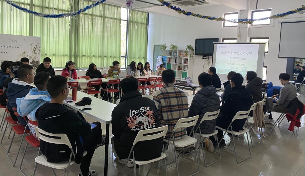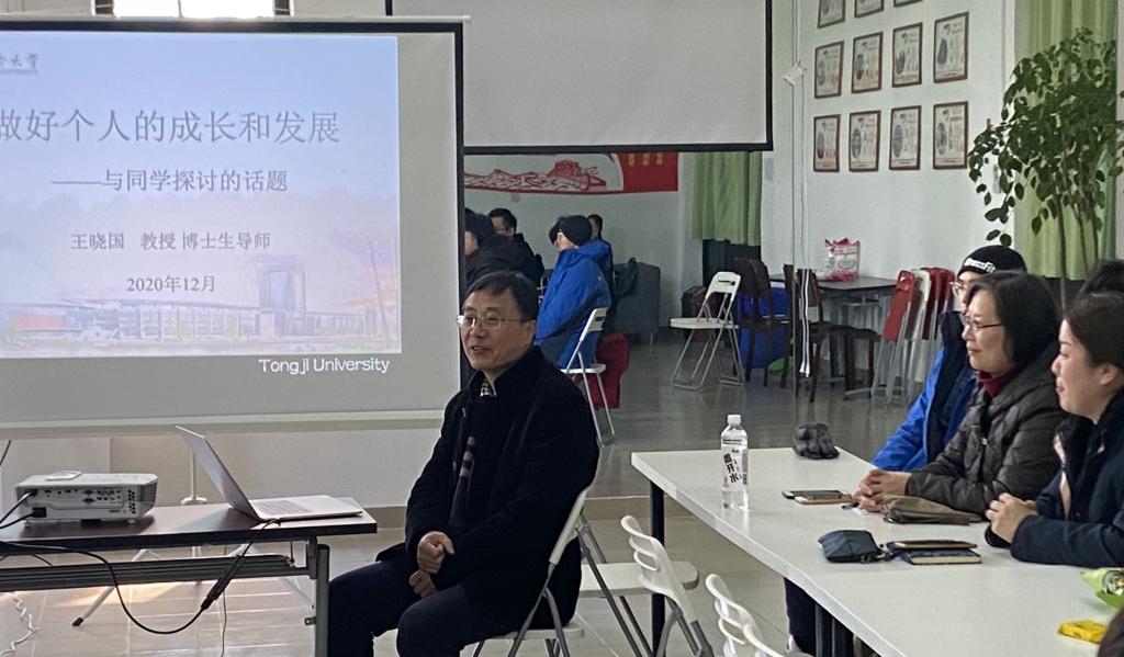 王晓国主任先以“做好个人的成长与发展”为题,与到场的20余名同学进行了深入的探讨,为同学们的学业发展和生活目标提供了参考方向。他从学校人才培养目标为切入点,希望同学们在学业发展、能力培养、职业规划、身体健康等方面定好目标、做好规划,形成正确的观念,做好自己的事。随后,他又从专业前沿发展的角度为同学们做了分享,勉励同学们勇担复兴大任,争做时代新人。针对“如何平衡学习、科研和工作”这一问题,他认为要主动与导师进行沟通,也要学会拒绝。学生的第一要务是学习,要做好自己的分内之事,主动承担自己应该承担的重任。在交流中,针对同学们反映的嘉定校区的建设问题,他认真记录,表示会将问题逐一反馈与解决。