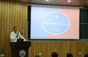 首先,学院党委书记王峻发表讲话,提出人才培养是国之大计,是党之大计,辅导员是学生成长的陪伴者和引路人,扮演着十分重要的角色。为了进一步加强和优化学生工作队伍,在学院党委的大力支持下,必赢官网成立了一支兼职辅导员队伍,感谢同学们对学生工作的热情。随后,王峻书记对兼职辅导员提出了殷切的期望和更高的要求:兼职辅导员需要从学生角色向老师角色转变,要切实承担起老师立德树人的责任。同时作为学生,也要保质保量完成学习任务,平衡好学习和工作。希望每位兼职辅导员都能提高政治站位,与专职辅导员队伍协同育人,推动学院学生工作开创新局面,打造学工一流团队!