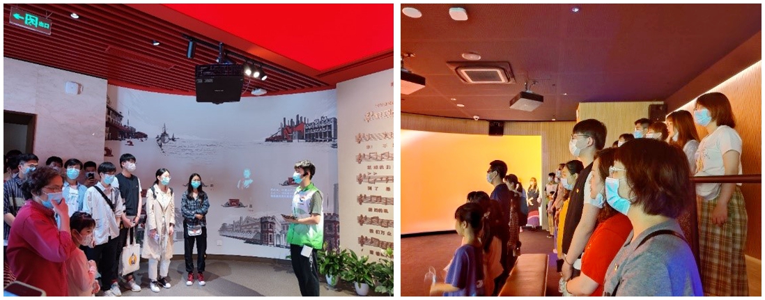 “起来!不愿做奴隶的人们!……”,进入国歌展示馆,这雄壮激昂的音律便开始在党员心中澎湃。全体党员在大厅歌唱国歌后开始参观国歌展示馆,心中的音律始终伴着馆内的国歌背景音乐共鸣。展示馆中陈列着各种各样的历史文件、书稿以及照片等,全面展示了《义勇军进行曲》诞生的背景和过程、传唱和影响、被确定为国歌、国歌作者、国歌故事等国歌知识。参观过程之中,支部成员认真阅读每一份书稿,仔细品味背后的故事。通过参观,党史学习进一步具象化,支部党员对国歌的故事有了更全面的认识。