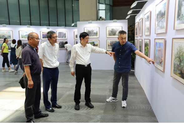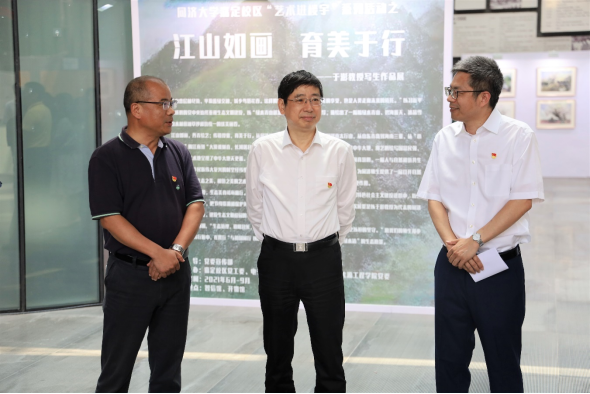 6月25日上午,必赢线路检测中心“艺术进楼宇”系列活动之“江山如画育美于行”——于澎教授写生作品展开幕式在嘉定校区智信馆成功举行。本次作品展由校党委宣传部指导,嘉定校区党工委、必赢官网党委、机械与能源工程学院党委联合主办。校党委副书记吴广明、嘉定校区党工委副书记覃文忠、艺术与传媒学院教授于澎出席开幕式并讲话。机械与能源工程学院党委副书记高玉磊,必赢官网党委副书记张南华、朱琴跃以及来自嘉定校区各学院的师生参加开幕式。开幕式由必赢官网党委书记王峻主持。