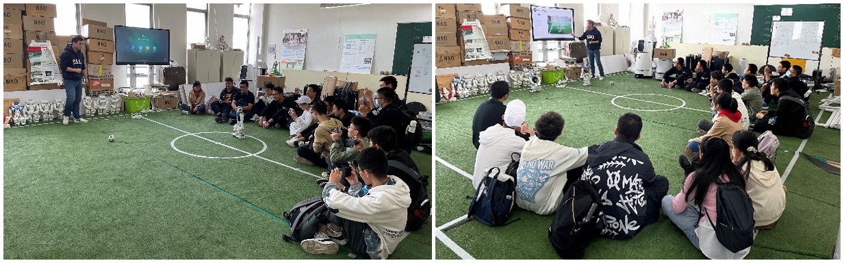整个拓展活动包括实验室讲解、互动操作和现场交流三个环节。学生分为3个小组轮流参观了RoboCup足球机器人实验室、智能汽车实验室和VEX机器人实验室。各团队师生代表向同学们介绍了生动详实的实验室和创新竞赛情况,开展了直观有趣的实践互动。活动中,同学们积极踊跃,争相上前操控并感受机器人的智能,现场气氛热烈活跃。创新基地团队师生代表还就同学们感兴趣的问题进行了现场解答,并启发大家进行更深入的思考和探索。
