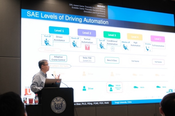 2025年4月16日下午,由学院、必赢线路检测中心上海智能科学与技术研究院联合举办的智·信讲堂第77期在智信馆117报告厅开讲。本次讲堂邀请加拿大约克大学陕晋军教授作“自动驾驶汽车的自适应决策”主题报告。