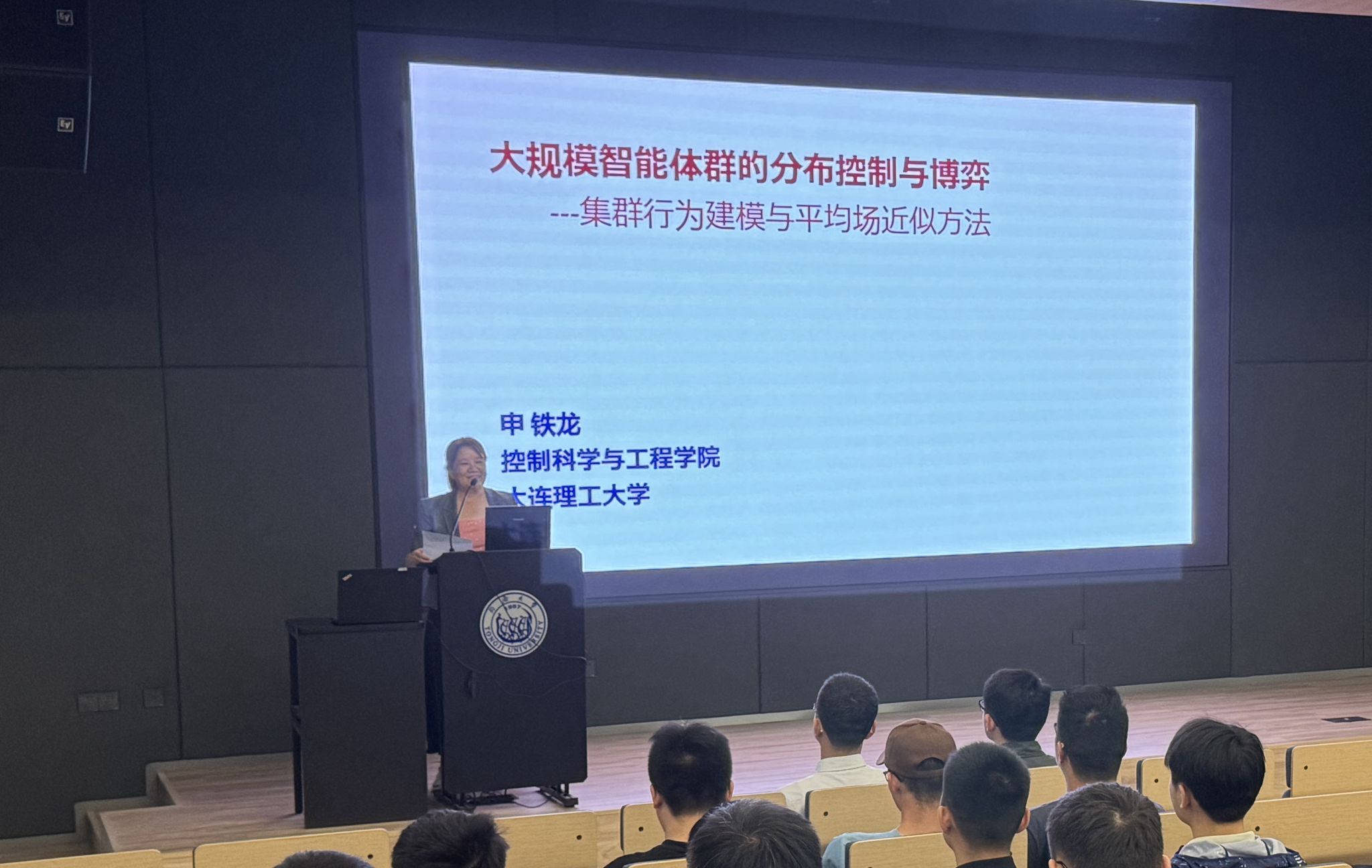 申铁龙教授首先介绍了在智能网联环境下大规模汽车社会中车辆之间的复杂相互作用,指出这种耦合关系为车辆的分布式控制带来了新的挑战。然后,他详细阐述了大规模智能体集群行为建模的平均场近似方法,并通过具体案例展示了基于平均场博弈框架的汽车动力系统分布式控制策略的设计。