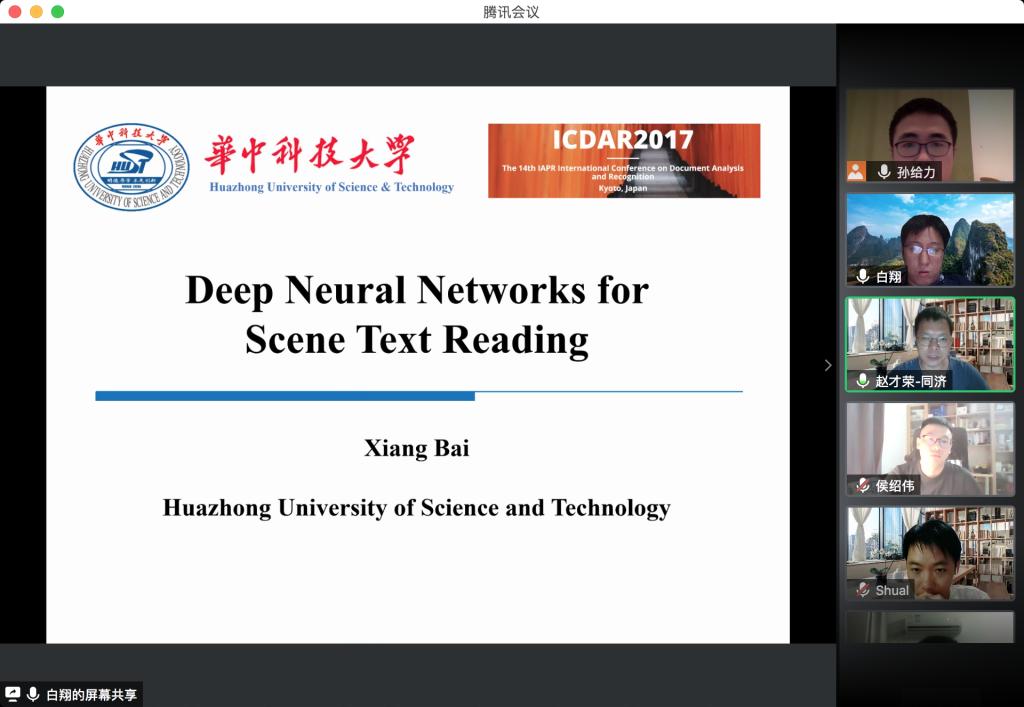 白翔教授的报告题目为“场景文本检测与识别”,并针对不规则文本检测做了详细介绍和分析。在本次报告中,白翔教授照例介绍了文本检测的发展历史、研究意义和主要思路。在后面的详细介绍部分,针对多个解决思路,从检测和识别的两个部分,详细介绍了多篇论文中的方法。在不规则文本检测部分,针对密集文本、弯曲文本等问题进行了讲解。虽然报告在线上举行,但是仍旧取得了良好效果,诸多该领域的最新进展使同学们感到新颖、有趣,并加深和拓展师生的理论理解和学术视野。报告后听众与专家进行了热烈的讨论。