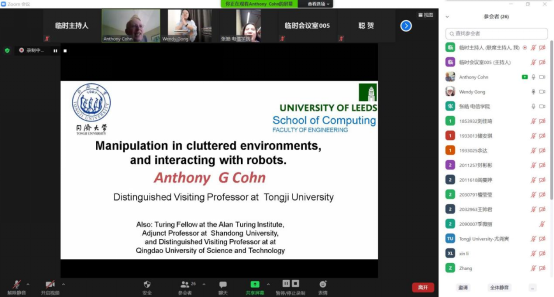 4月23日,英国利兹大学教授Anthony G Cohn应邀参加学院智·信讲堂,通过ZOOM线上形式,作了题为《混乱环境中机器人的交互与操控》学术报告,并与师生开展学术交流及探讨。