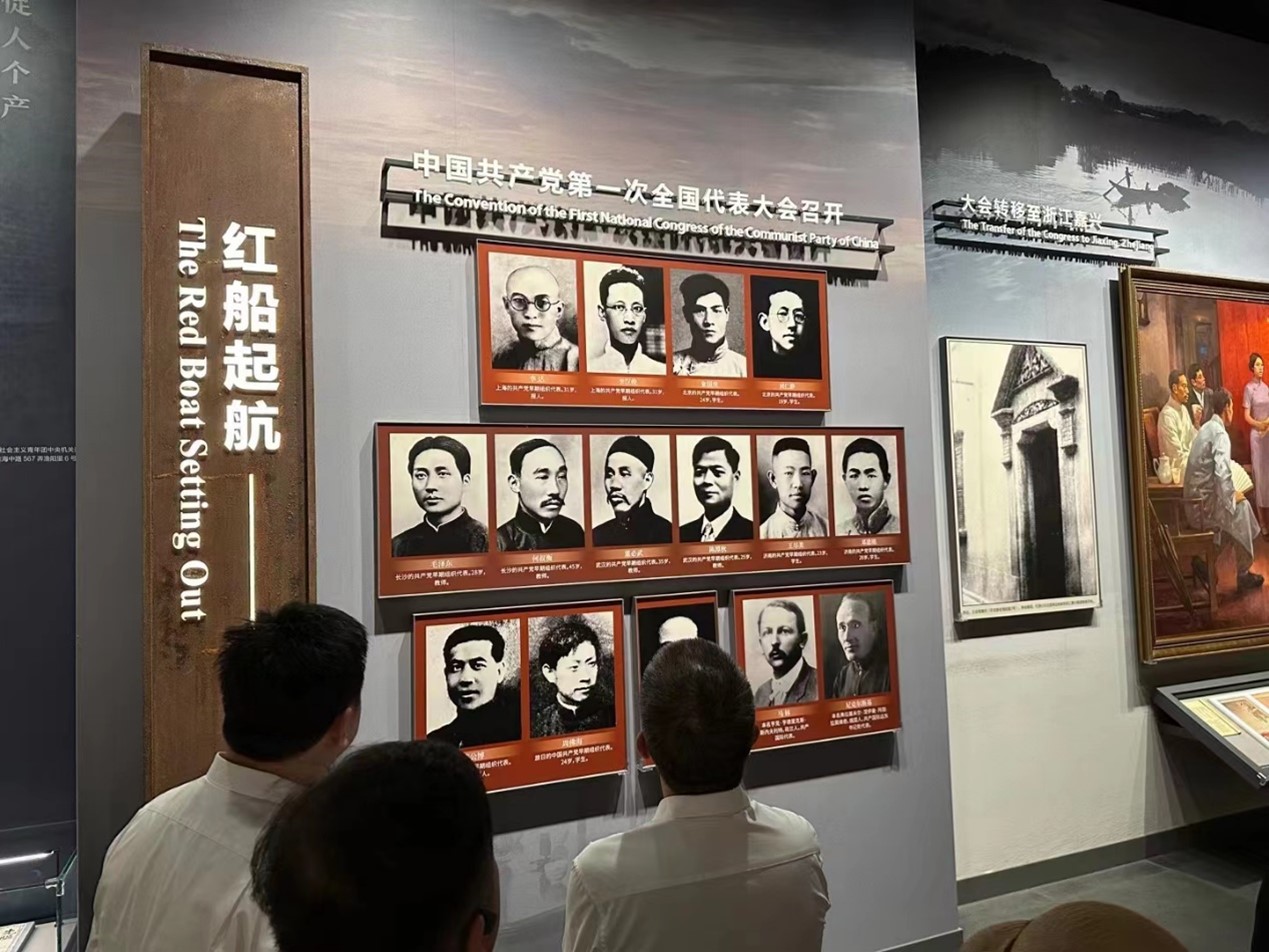 在南湖革命纪念馆内,同志们沿着中国共产党100余载的光辉历程,共同回忆中国共产党从建立到发展的这一开天辟地的大事变。