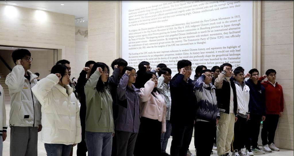为继承和发扬党的光荣传统和优良作风,进一步引导新党员铭记入党初心、坚定理想信念、强化使命担当,在中共一大会址纪念馆的党旗下,学院党委副书记、学生党委书记徐伟铖同志作为领誓人,带领19名新党员高举右臂、紧握右拳、庄严宣誓。“我志愿加入中国共产党,拥护党的纲领,遵守党的章程......为共产主义奋斗终身,随时准备为党和人民牺牲一切,永不叛党。”