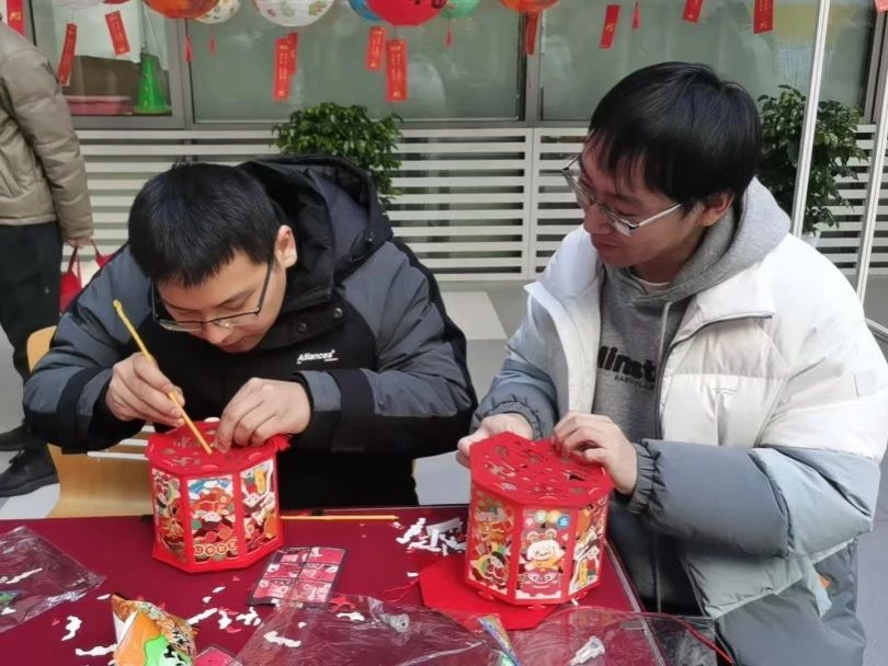 在灯笼DIY区,大家聚精会神地动手制作属于自己的灯笼,红纸剪裁间,创造出一盏盏充满创意的灯笼,传递着新春的温暖与希望。