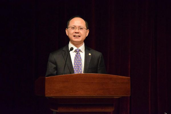最后,校党委副书记冯身洪致辞。他对同学们在中国特色社会主义进入新时代时成为毕业生表示祝贺,对所有电信学院为学生培养付出辛勤劳动的各位老师和各位院领导表示感谢,并祝愿大家“前程似锦,满地鲜花,掌声如潮,达到新的辉煌”。他对每一位毕业生都寄予了殷切期望,他鼓励同学们“继续传承同济的精神,同济的情怀,同心同德同舟楫,济人济事济天下”;他还引用习主席的话,“青年兴则国兴,青年强则国强,青年一代有理想、有本领、有担当,国家就有前途,民族就有希望”,希望同学们成长为有用的人,能够为社会作出更大的贡献。最后冯身洪副书记将临别赠言送给每一位毕业生:仰望星空,志不坠青云,脚踏实地,行必积跬步。