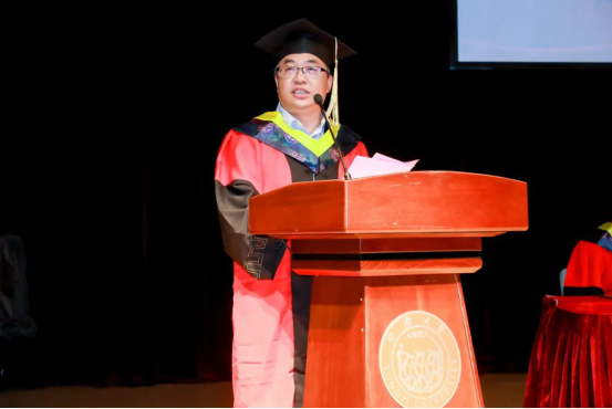 大会上,陈启军院长代表学院全体教职工对全体毕业生顺利毕业表示祝贺,向毕业生分享了自己的人生感悟,将想要说的话汇成四字经,对同学们提出了殷切希望:第一,认识世界,心存善念,珍爱生命,敬畏自然;第二,脚踏实地,学无止境,独立自主,善于创新;第三,初心如磐,坚定信仰,修身立德,勇于担当。