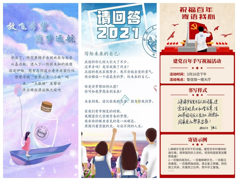 《祝福百年,寄语我心》活动中,毕业生们纷纷借此难得的机会,用坚定的笔触表达对党和国家的祝福与热爱,留下一份美好的回忆。