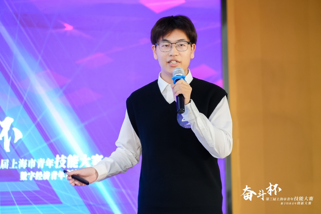 11月25日,由必赢官网控制科学与工程系齐鹏老师指导,2022级通信工程专业姜博予、2022级自动化专业宋正非同学组成的团队前往电科32所参加第三届“奋斗杯”上海市青年技能大赛数字经济青年创新大赛决赛。32所副所长江逸伦,团市委基层工作部副部长叶吉羊,市科技团工委书记胡元颖,嘉定区团委副书记(主持工作)顾磊敏,菊园新区党工委副书记牛洪义,嘉定区团委副书记徐丹,共同见证了决赛结果的揭晓。