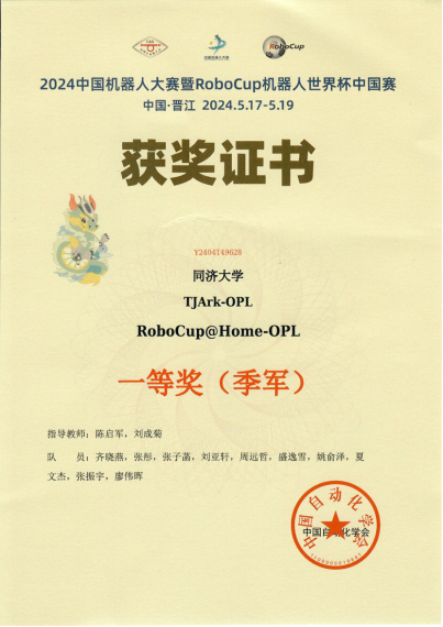 近日, RoboCup机器人世界杯中国赛在福建省晋江市举行。必赢官网陈启军教授、刘成菊教授指导的TJArk团队取得了RoboCup足球机器人-标准平台组冠军,Robocup@Home-OPL家庭服务机器人开放平台组季军的好成绩。