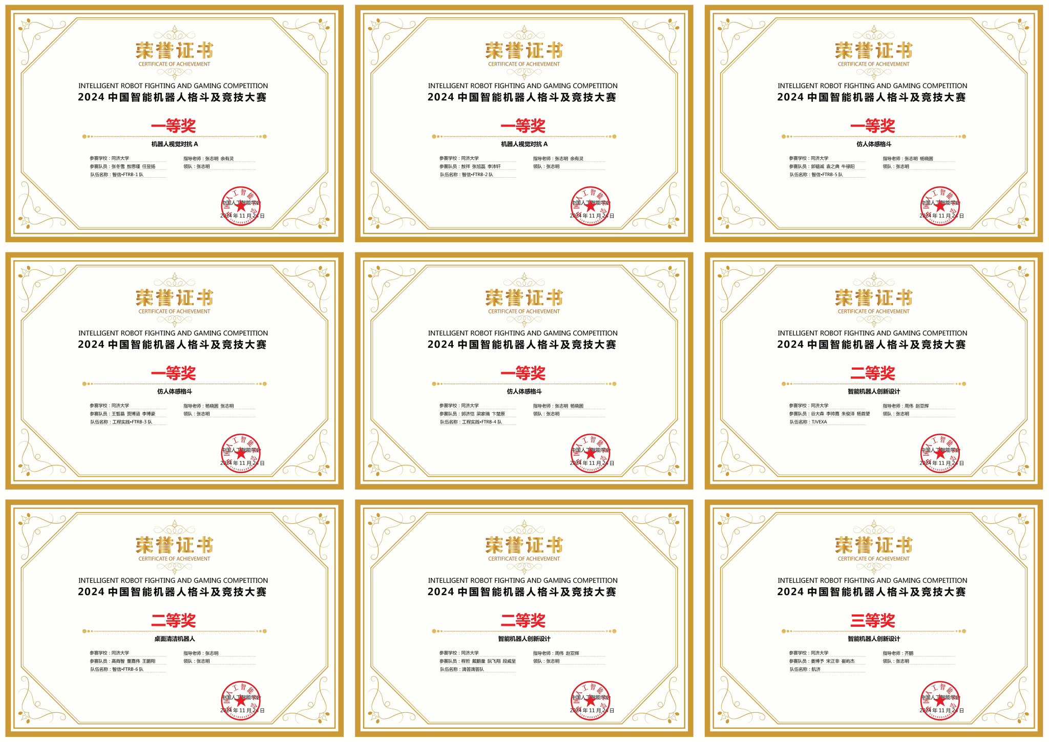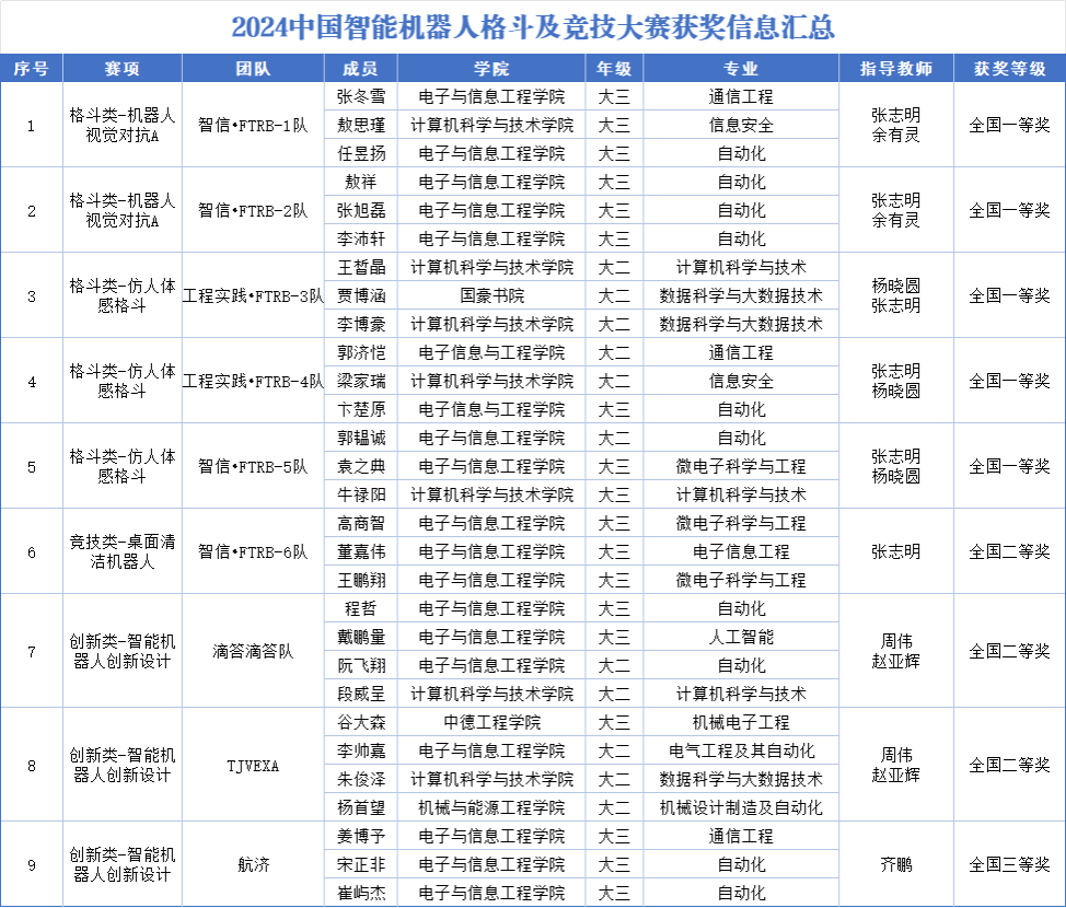 2024中国智能机器人格斗及竞技大赛队伍获奖信息汇总