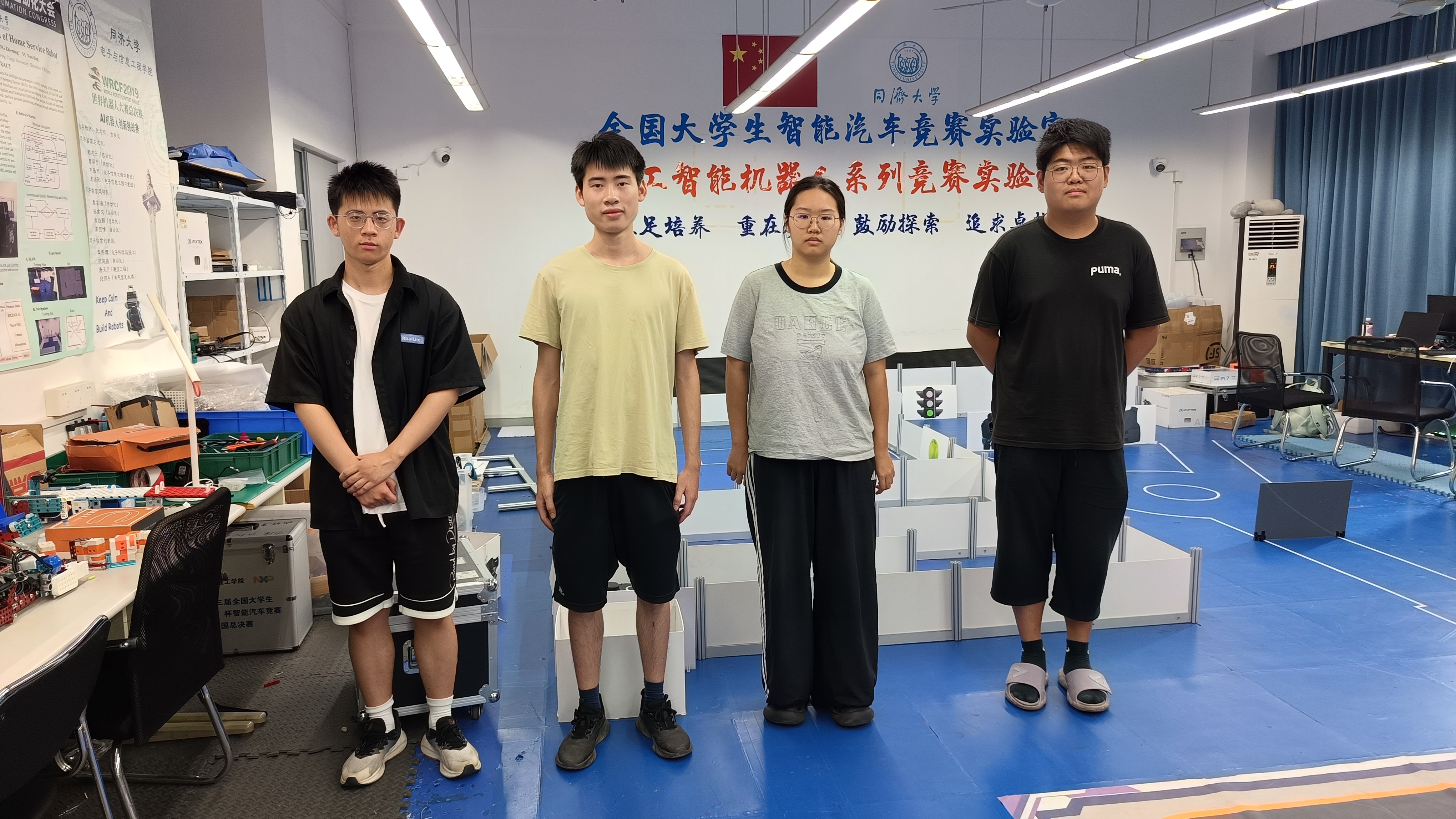 参赛队伍合影(从左到右:张旭磊、梁益诚、罗涵、姜智博) 参赛车模