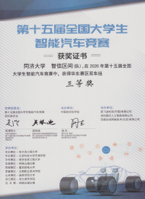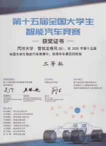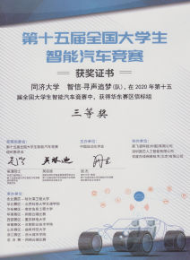 智能车竞赛涵盖了控制、模式识别、传感技术、电子、电气、计算机、机械等多个学科知识,参赛队伍自主构思控制方案进行系统设计,包括传感器信号采集处理、电机驱动、转向舵机控制以及控制算法软件开发等,完成智能车参赛作品工程制作及调试,以速度为评判标准决出名次。华东赛区比赛中,于春芃(机械电子工程,中德工程学院)、王妙峰(通信工程)两位同学组成的“智信龙卷风”队取得基础四轮组二等奖;徐家富(电子科学与技术)、李嘉晨(自动化)、赵恩霆(电子科学与技术)三位同学组成的“智信·寻声追梦”队取得声音信标组三等奖;李凌霄(电气工程及其自动化)、何敬(自动化)、黄佳其(电气工程及其自动化)、林啸(自动化)、李青昊(车辆工程,汽车学院)五位同学组成的“智信区间”队取得双车接力组三等奖;方少腾(自动化)、王松森(计算机科学与技术)、邹培锐(电气工程及其自动化)三位同学组成的“智信节能—FWZ”参加直立节能组因故未能完赛。汽车学院队伍获得华东赛区电磁组三等奖1项。