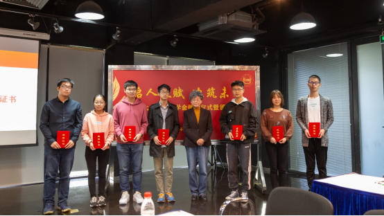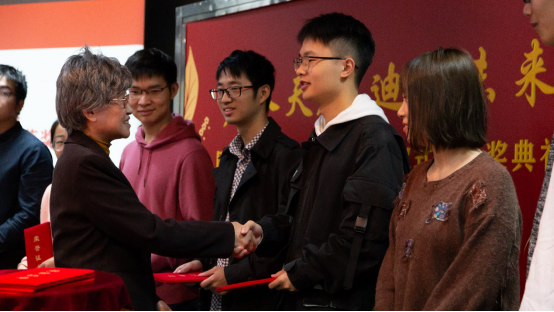 吴启迪教授为获奖学生颁发启迪奖学金证书并合影留念。