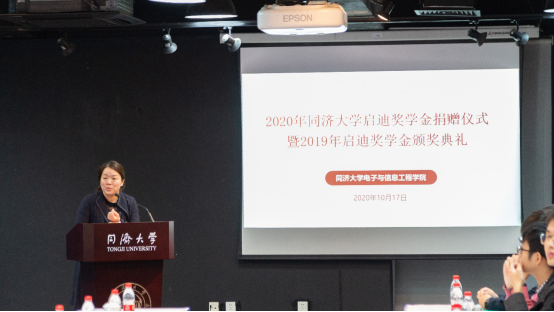 张南华老师首先介绍了出席此次典礼的各位嘉宾,并简要介绍了启迪奖学金的设立初衷。启迪奖学金设立于2010年,由吴启迪教授和1988级自动化专业的11名校友共同出资设立,旨在激励电信学子培养创新意识,积极参加科技创新活动,增强专业动手实践能力。