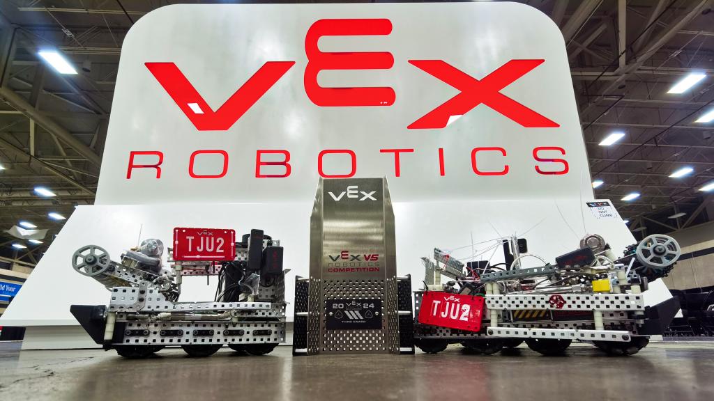 VEX机器人实验室从2023年暑假便开始“粽横天下(over under)”主题机器人的设计和调试,经过成都VEX机器人亚洲公开赛华西交流赛、上海全国VEX机器人精英赛暨VEX世锦赛中国选拔赛、无锡VEX机器人亚洲公开赛国际签名赛等比赛的层层考验,曾获得全国VEX机器人精英赛全能奖、VEX机器人亚洲公开赛国际签名赛全能奖和技能赛冠军。由于本赛季成绩突出,获邀参与本届VEX机器人世锦赛并代表中国出席VEX机器人世锦赛开幕式。