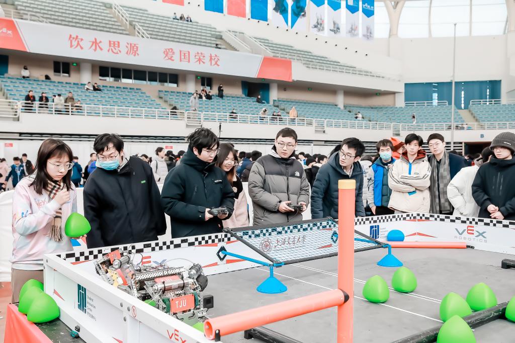 2023年12月29日至2024年1月1日,VEX团队成员克服期末压力,参加了在无锡太湖国际博览中心举办的亚洲公开赛国际签名赛。该赛事吸引了近千只VEX机器人队伍、4000余名青少年参加。大学组VEX U组别吸引国内及港澳队伍7支参赛,包括香港大学联队、澳门大学联队、华南农业大学、上海理工大学等队伍参赛,经过3天近40场激烈角逐,TJU队获得全能奖(最高奖项),TJU2和TJU分获联赛冠亚军以及技能赛冠、亚军。队员们在赛场展现了优良的竞赛作风,本着友谊第一、比赛第二的理念与其他参赛队建立了良好的关系。比赛期间,参赛队员认真准备课程作业的场景也展现了努力勤奋的良好学风。之外,大家还积极参与比赛组织工作和志愿活动,获得赛事方颁发的最佳志愿者奖旗和奖杯。赛事方乐博士机器人有限公司给予队员们高度评价,并提供了餐饮与住宿后勤便利。