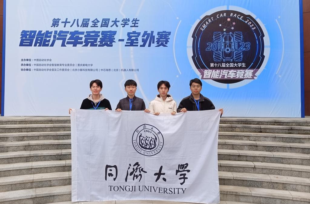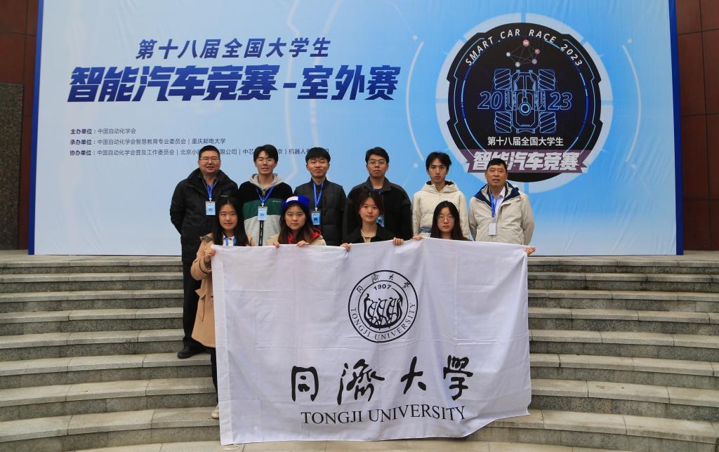 本次大赛也是全国大学生智能车竞赛实验室的2023年度收官比赛,为此,竞赛实验室负责人张志明老师在新学期招新工作结束后,便与参与辅助管理的杨思远、刘梦晓、许一航等老队员共同制定室外赛参赛计划,并选拔组建新一届队伍参加ROS无人车竞速赛。向思丞(人工智能)、叶龙钦(人工智能)、任思剑(人工智能)、徐存阳(自动化)四位同学组成“睿行·智信1队”,李静芝(通信工程)、李姝仪(微电子科学与工程)、张彤(自动化)、张冬雪(通信工程)四位同学组成“睿行·智信2队”。本次大赛分区赛采用线上比赛方式,总决赛则恢复为线下现场比赛方式。在本科生院、电信学院和嘉定校区管委办等单位的支持下,两支队伍积极备赛,团结协作,克服准备时间短和技术基础弱的困难,继双双获得南部赛区二等奖并获得国赛资格后,再接再厉,由张志明和朱劲两位老师带队,在重庆邮电大学太极体育场举办的全国总决赛中,努力应对比赛现场中的各类复杂因素并成功完赛,最终“睿行·智信1队”获得一等奖1项,“睿行·智信2队”获得三等奖1项。