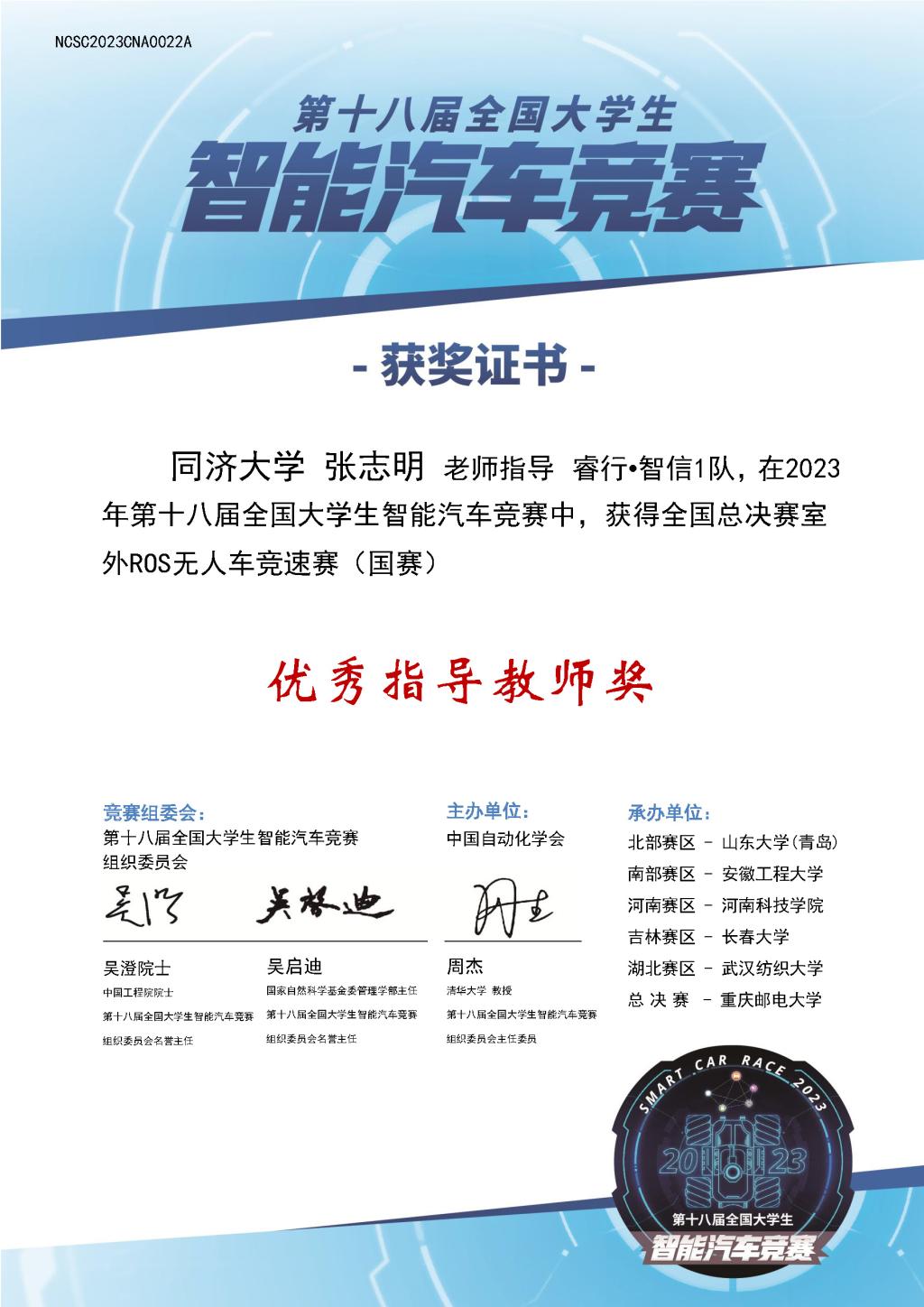 2023年12月8日至10日,由中国自动化学会主办,中国自动化学会智慧教育专业委员会、重庆邮电大学承办的第18届全国大学生智能汽车竞赛室外赛全国总决赛成功举办。必赢官网2支本科生参赛队伍由张志明和朱劲两位老师带队赴渝参赛,最终获得室外ROS无人车竞速赛全国一等奖和三等奖各1项。张志明老师获“优秀指导教师奖”。