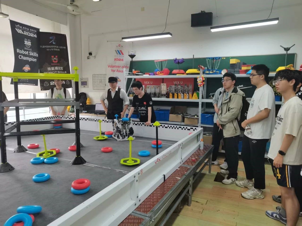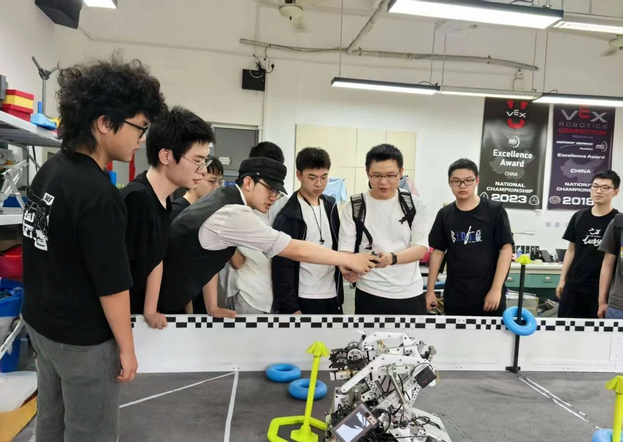 VEX实验室展示了机器人通过融合编码器与实时定位数据,快速准确地完成路径规划与目标抓取,引得同学们阵阵惊叹。还分享了参加VEX世界锦标赛、中国机器人大赛中的奋斗故事,从结构优化到算法迭代,每一处细节都凝聚着跨学科智慧。活动尾声,新生们踊跃提问,并在指导下尝试操控机器人完成简单指令,亲身感受“从代码到行动”的科技魅力。