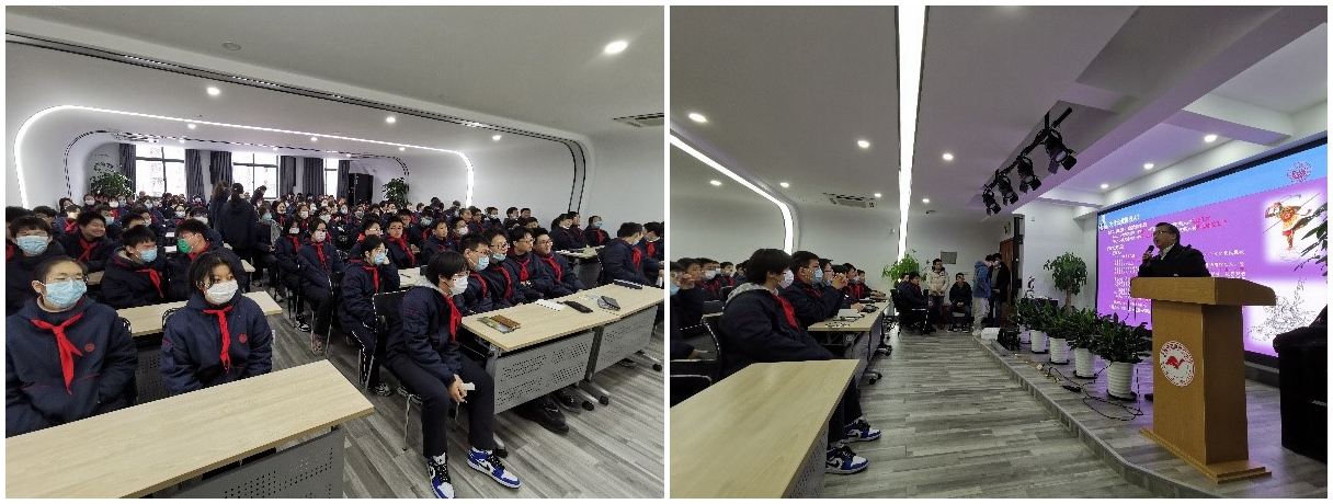 2021年1月20日上午,必赢官网大学生创新基地师生一行七人:余有灵、徐志宇、周伟、张志明、程珺飞、刘一本、袁家遥,应邀来到杨浦区鞍山初级中学,为该校八年级140余名中学生带来了关于智能机器人的知识讲座和现场展示。